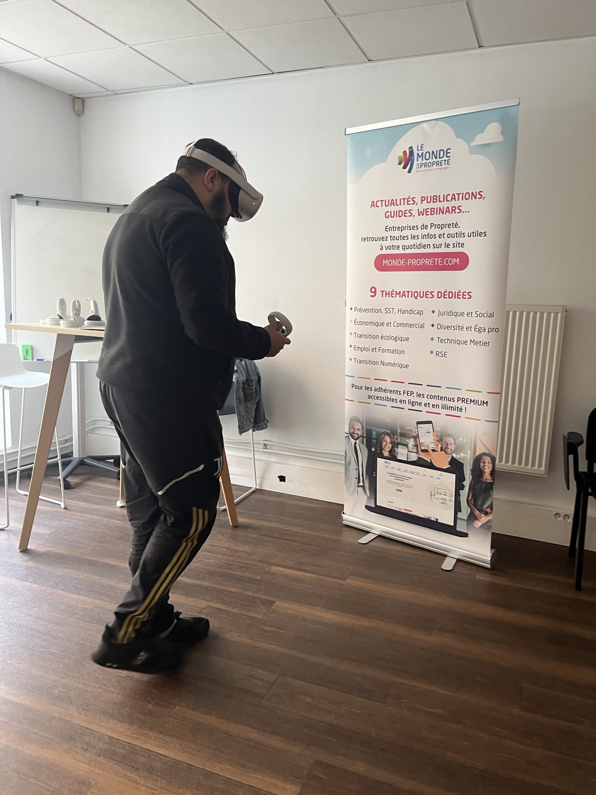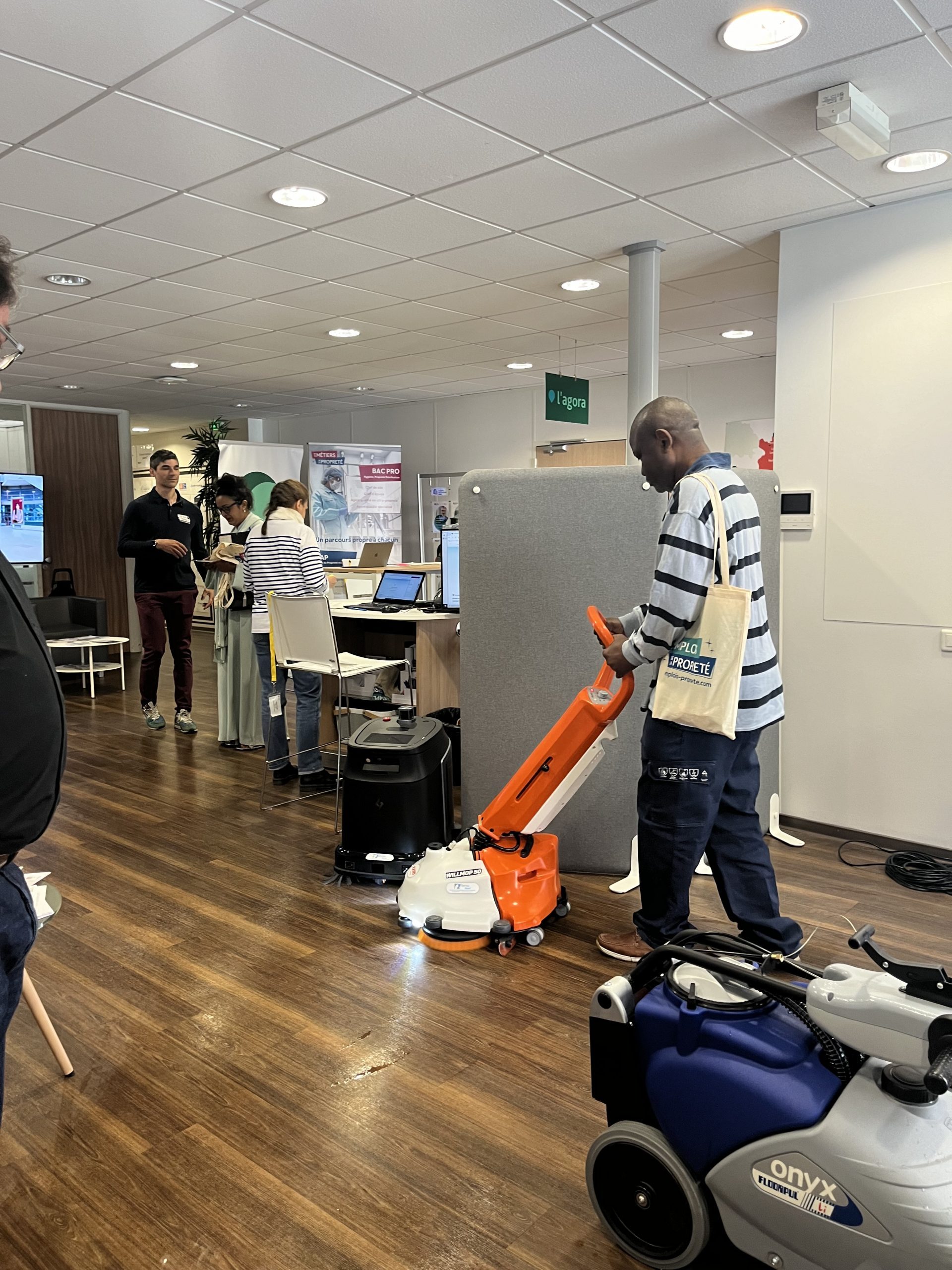 C’est à travers divers ateliers que nous avons fait vivre cet événement : démonstrations pratiques des machines et techniques de nettoyage, des rencontres avec des professionnels du secteur, immersion totale dans le monde de la propreté grâce à nos casques à réalité virtuelle, démonstration des techniques de laveur de vitres sans oublier l’incontournable job dating où demandeurs d’emploi et entreprises de propreté ont pu profiter de ces journées pour se rencontrer et bâtir de nouveaux projets ensemble !